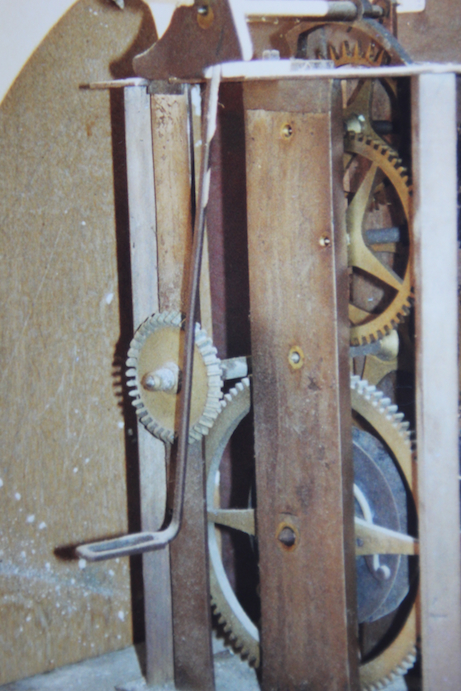 Hij maakte een gangwerk voor de staande kok van de raadzaal dat ook de wijzers verzet van het uurwerk in de voorgevel .